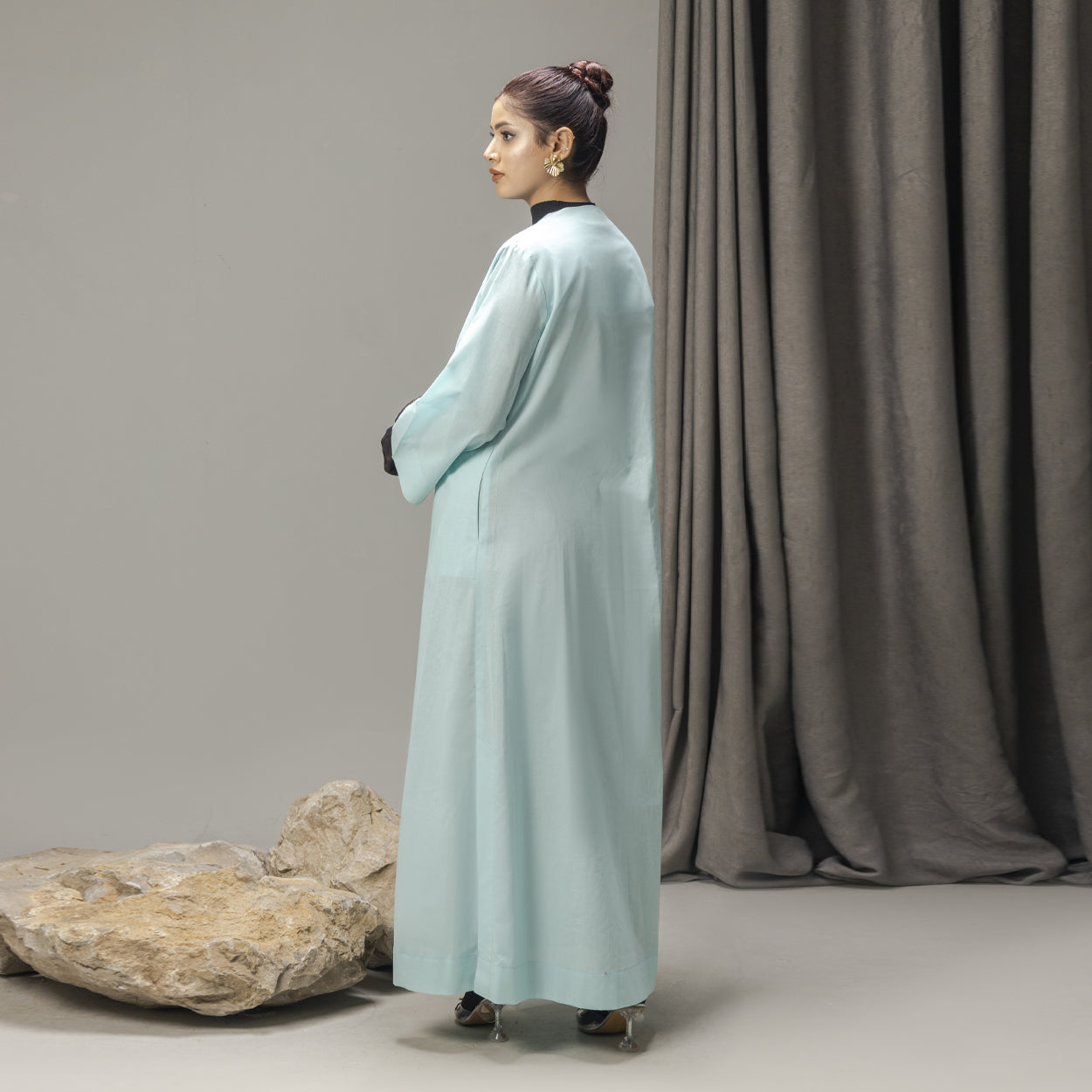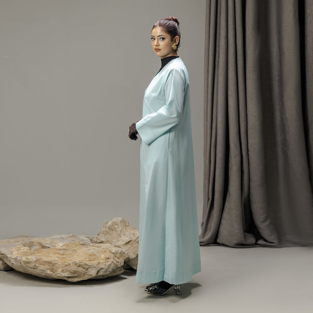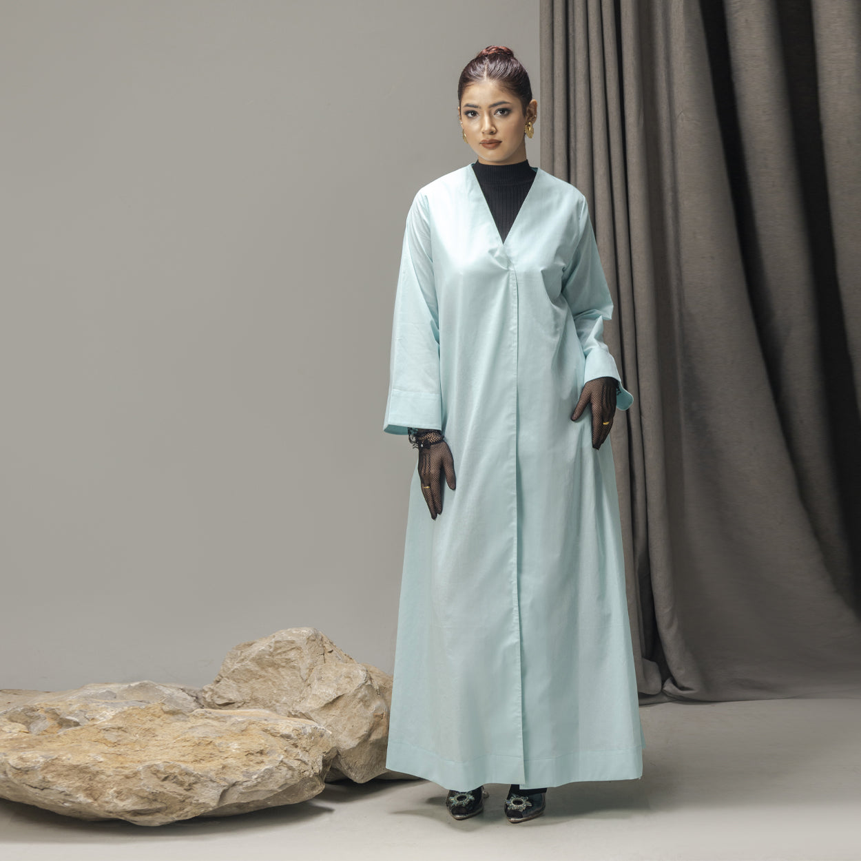 The ASHLAY SEA is crafted from premium korean imported soft cotton in a serene sea-inspired tone, designed with a clean V-neckline and a fluid, elongated silhouette. Calm in expression yet refined in structure, it embodies effortless modest luxury with a fresh, modern feel.