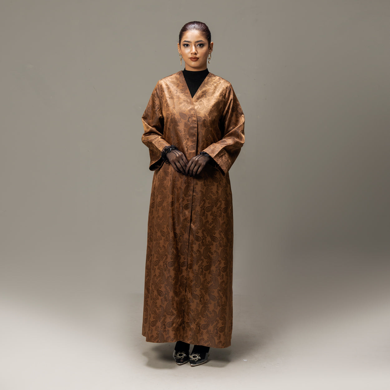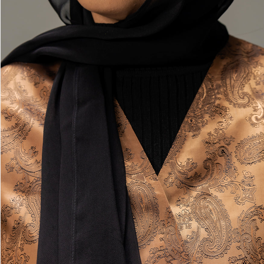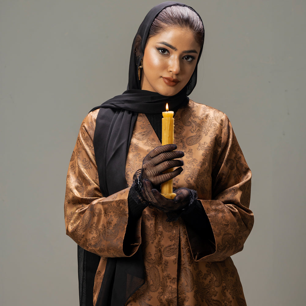 The PERSIKLA is crafted from premium medium-weight crepe, enriched with a subtle jacquard-inspired pattern that adds depth and texture to its fluid silhouette. Refined in structure yet graceful in movement, it offers a warm, elegant expression of modern modest luxury.